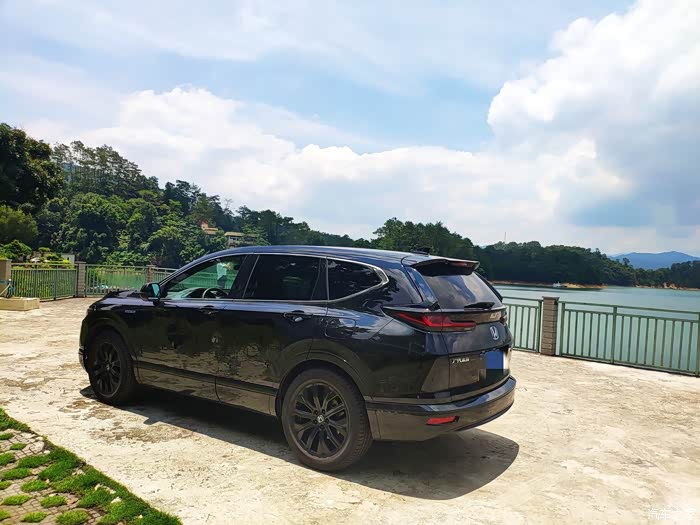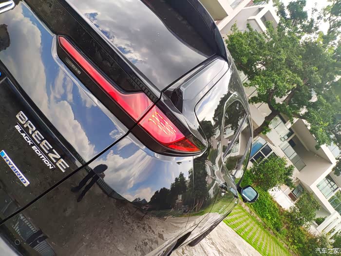 然后我对这个车的体验最深的话,就是零到80这段。首先从红绿灯起步开始,轻轻的给油,它完全是用电机起步的。车的隔音还算OK,除了路噪大一点,发动机的声音是完全听不到的,如果开的音乐在车里几乎听不到任何外界的声音。我开车的话一般40之后它的发动机就开始介入了,这时候动静会有一点,但不会很明显。40到80这一段虽然发动机介入了,同时我们也看不到转速,但是会感受到发动机还是会以一个较低的转速来驱动车子,所以整体来说零到80这段速度整台车的安静程度以及舒适性都是十分不错的。我买的这台是幻夜版本的,它连内饰天花板都是比较暗色的。但是它的空间比较大,所以即使这样也不会给你营造一种压抑的感觉。