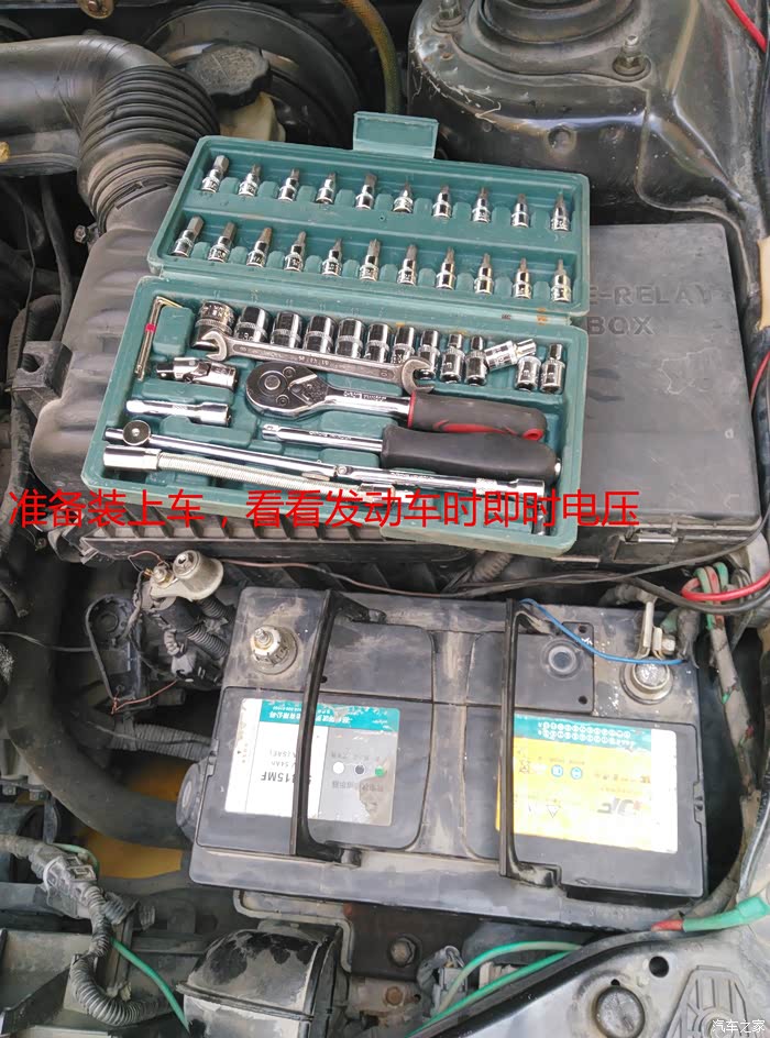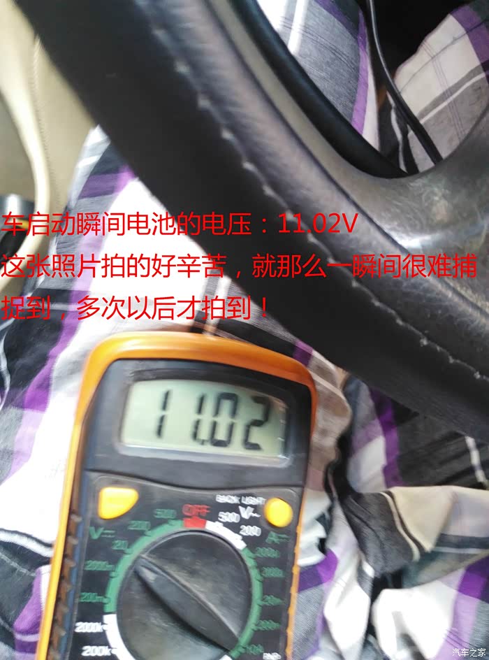放了7个多小时了,时间够了,再者要出去办事,准备装上车启动试试,看看启动瞬间的电压!