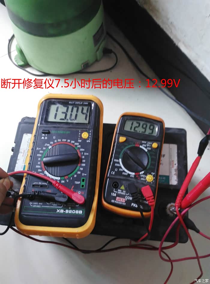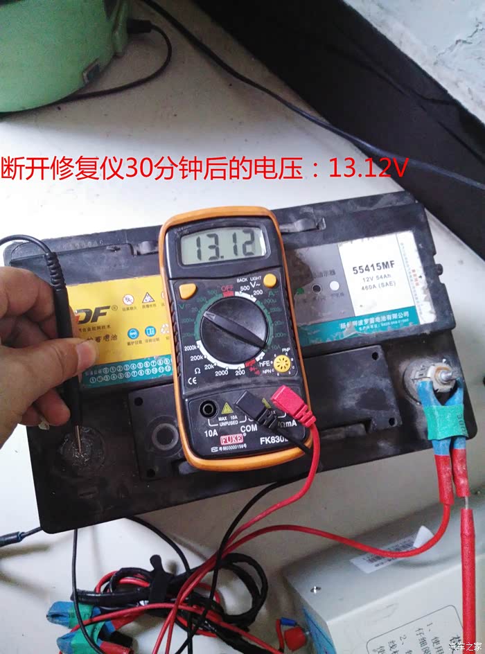 电池断开修复仪30分钟后的电压13.12V,降的不少!这么旧的电池可以接受。