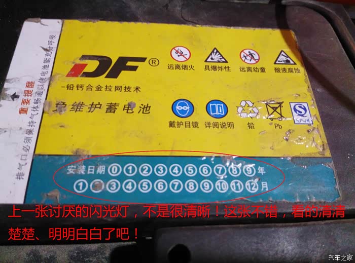 来2张电池的出厂日期的照片!照片显示最大09年,就按09年出厂的,到现在也7年了。