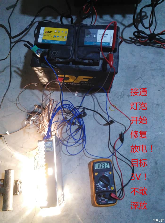修复放电还是采取保守的方法,用一个灯泡慢慢放,避免大电流放电损坏极板,那可真要退役了!