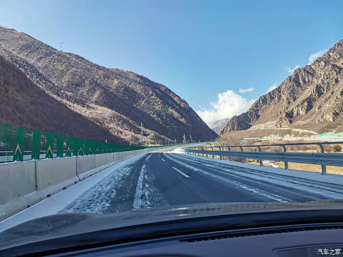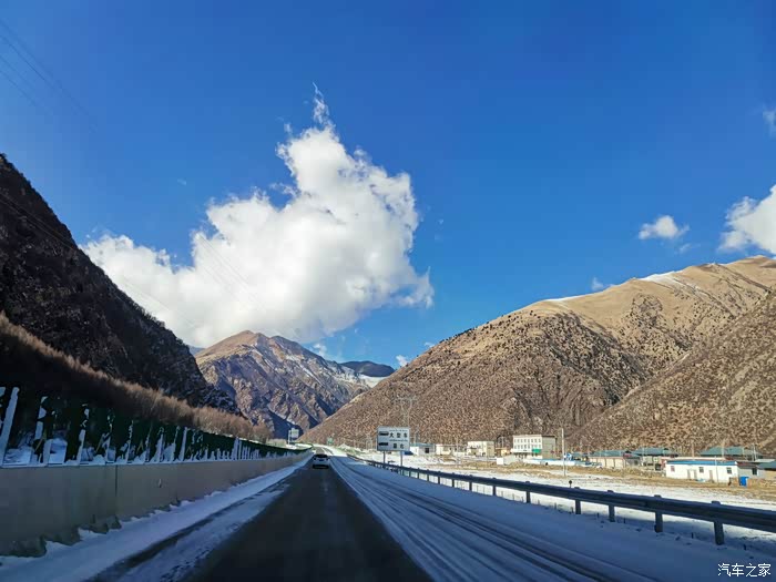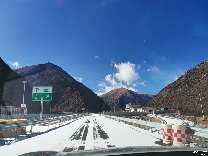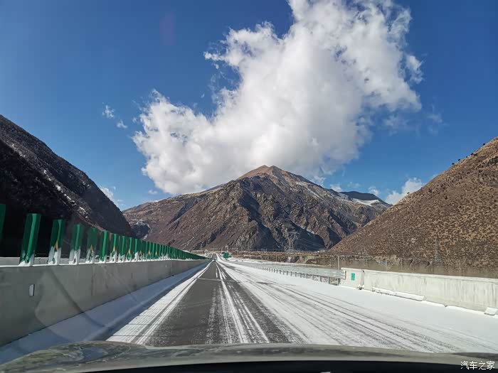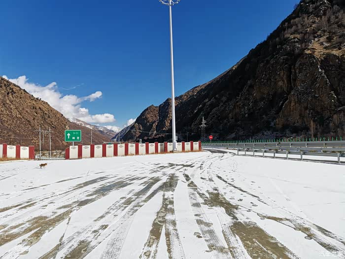 离开工布江达服务区以后,路上就开始有雪了,特别是太阳晒不到的地方,越是背阴面,太阳晒不到,积雪越厚,这种路面还能积雪放慢速度,本地车也放慢速度,缓慢通行。