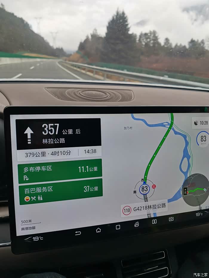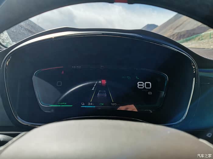 我全程就在右车道定速行驶,80KM/H,是迎着风向米拉山隧道爬坡,风阻真的不小,特别是风噪,吹得莎莎在响。