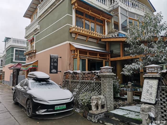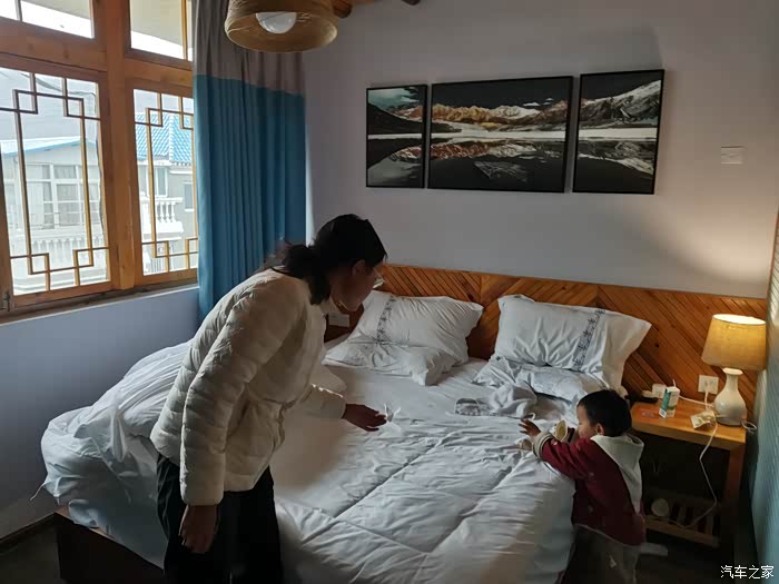 这是林芝的头一场雪,来得很突然呀,第二天一大早,我们起床,房间外就是白雪茫茫的一片了,雪下得不算大,但是这个真的是很兴奋,特别要数我家小孩就开心,看到雪就想早早下床出来玩雪。