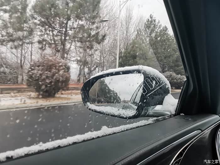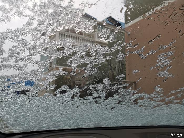 从车内看也比较薄,一雨刮,就给刮走了,再看一下气温,其实气温不算低,车载温度计显示车外温度0度。