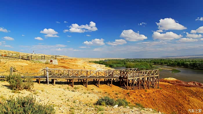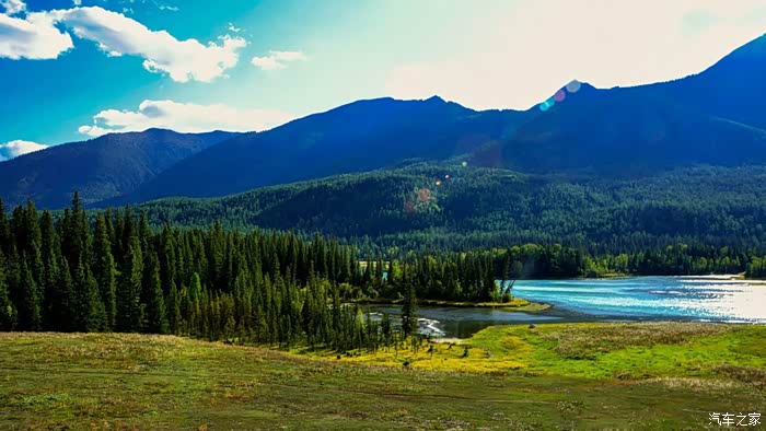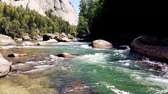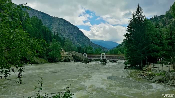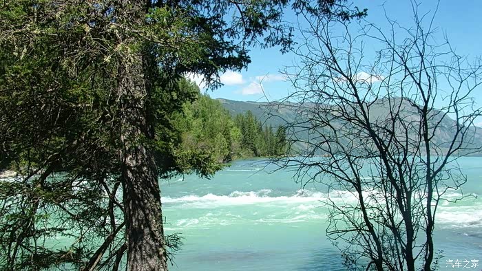 从布尔津到禾木有两条路,一条是走五彩滩经哈巴河先到喀纳斯,再到禾木。因喀纳斯景区内目前只能乘区间车进入,所以我先去禾木走的是另一条线路,从布尔津往贾登峪方向转禾木岔路口到达全程180公里。