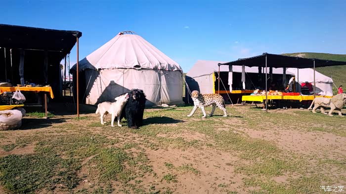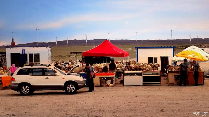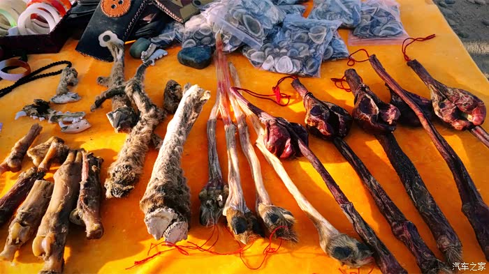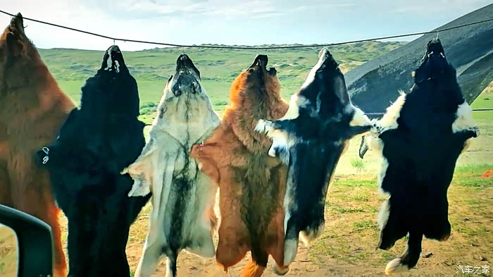 半路上看到一个卖狼皮的摊点,刚好边上有辆大巴车人比较多我才停车看看。