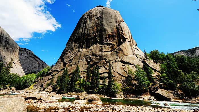 禾木河就在那里自东北向西南流淌着,原始落村与大草原和谐自然的融为一体。记得有人说过禾木河的水是灰蓝色的,在水光的明暗交织中你可以感觉到一种忧郁,带着致命美丽的忧郁……