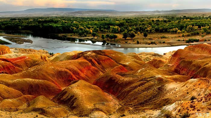 从布尔津到禾木有两条路,一条是走五彩滩经哈巴河先到喀纳斯,因喀纳斯景区内目前只能乘区间车进入,所以我先去禾木走的是另一条线路,从布尔津往贾登峪方向转禾木岔路口到达。
