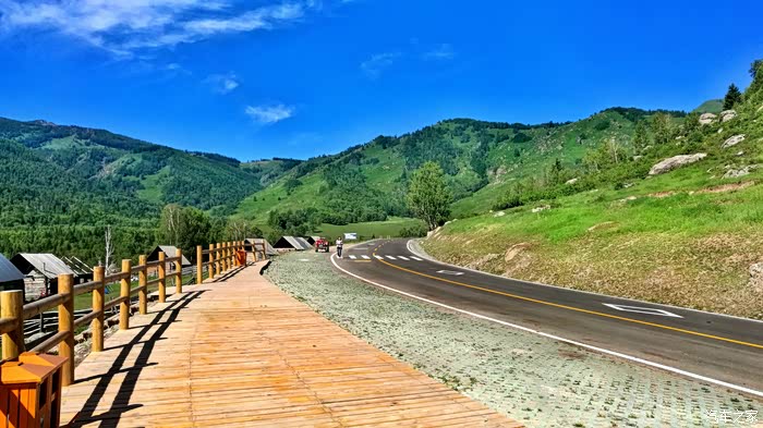 前往喀纳斯方向全程限速60-80公里的速度,你不要抱任何侥幸心理企图快速到达,路途中设有多处电子区间抓拍。实际上这样很好,你可以慢慢欣赏沿途风景又可以保证安全。布尔津出发到禾木岔路口约2.5小时,进入禾木方向后沿途有多处景观平台你可以休息拍摄观赏,到达禾木景区大门后就不能继续前进了,没有特殊关系都要换成景区区间车,每人往返120元大约1小时左右到达禾木。