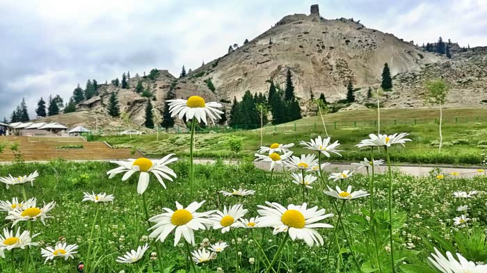 在新疆美丽的哈纳斯湖旁,有一个小巧的山村——禾木村,它素有“中国第一村”的美称。禾木村位于新疆布尔津县喀纳斯河与禾木河交汇区的山间断陷盆地中,海拔1124~2300米。与蒙古、俄罗斯、哈萨克斯坦三国接壤。盆地周围山体宽厚,顶部呈浑圆状,河流多切割为峡谷,地形复杂,额尔齐斯河支流禾木河自东北向西南贯穿其间,将盆地分割为两半。岸边有桦林和成片的向日葵,中间还夹杂着当地人洁白的毡房。山地阳坡森林茂密,苍翠欲滴,马鹿、旱獭、雪鸡栖息其间;而阴坡绿草满坡,繁花似锦,芳香四溢,蜜蜂在采花酿蜜,牛羊满山遍野觅食撒欢,一派迷人的广袤草原景色。