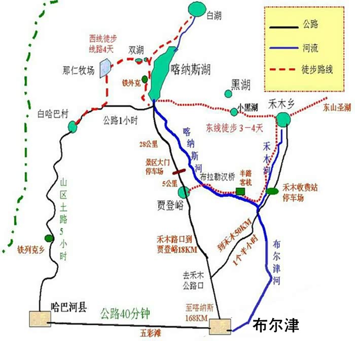 从布尔津出发往喀纳斯贾登峪方向,到禾木约180公里全程限速连游玩开了差不多4个小时。