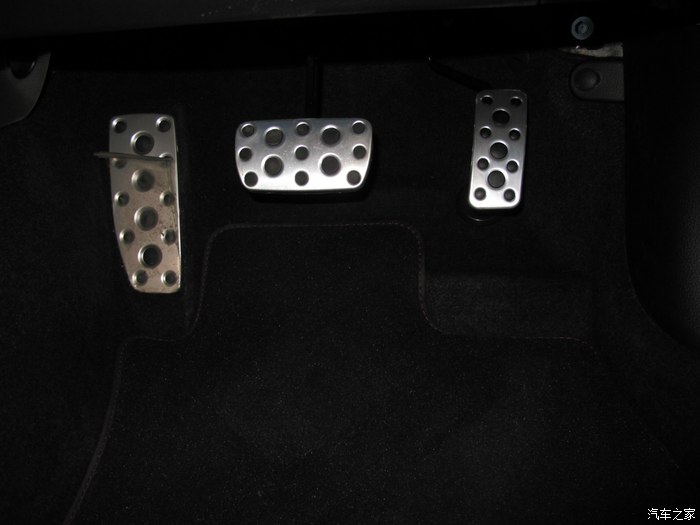 两块屏幕。虽然中控有点可怜,但是好过上一代。上面是行车电脑,显示车辆信息和倒车影像。下面是导航和音响控制。假碳纤维装饰板看起来很运动。
