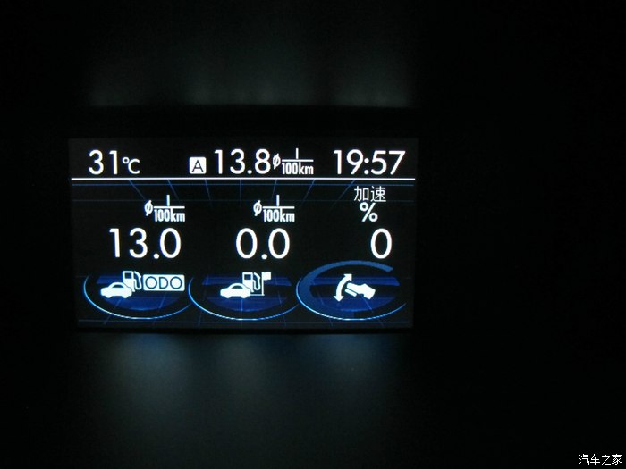 行车电脑第一页显示平均油耗,瞬间油耗还有油门深度。因为还在磨合 油耗有点高。