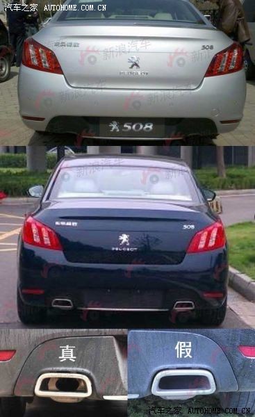 看上去标致508的高配车型使用了双排气管设计,而低配车型则是内藏式的排气管口。实则并不完全如此,高配车型的两个外露排气管口实际上也是亦真亦假,真正发挥排气作用的只有左侧的排气管,而右侧的金属管口不过是一个装饰而已。当然在外观上已经达到接近海外GT高性能车型的视觉效果,对于运动外观控的消费者是一个福音。