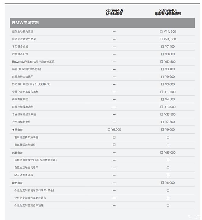 如果选上上面这几个,就几乎完美了,8月以后定选配,已经可以同时选配空气悬挂跟整体主动转向了。整体主动转向跟空气悬挂都是好东西,而且后期又完全没办法改装。