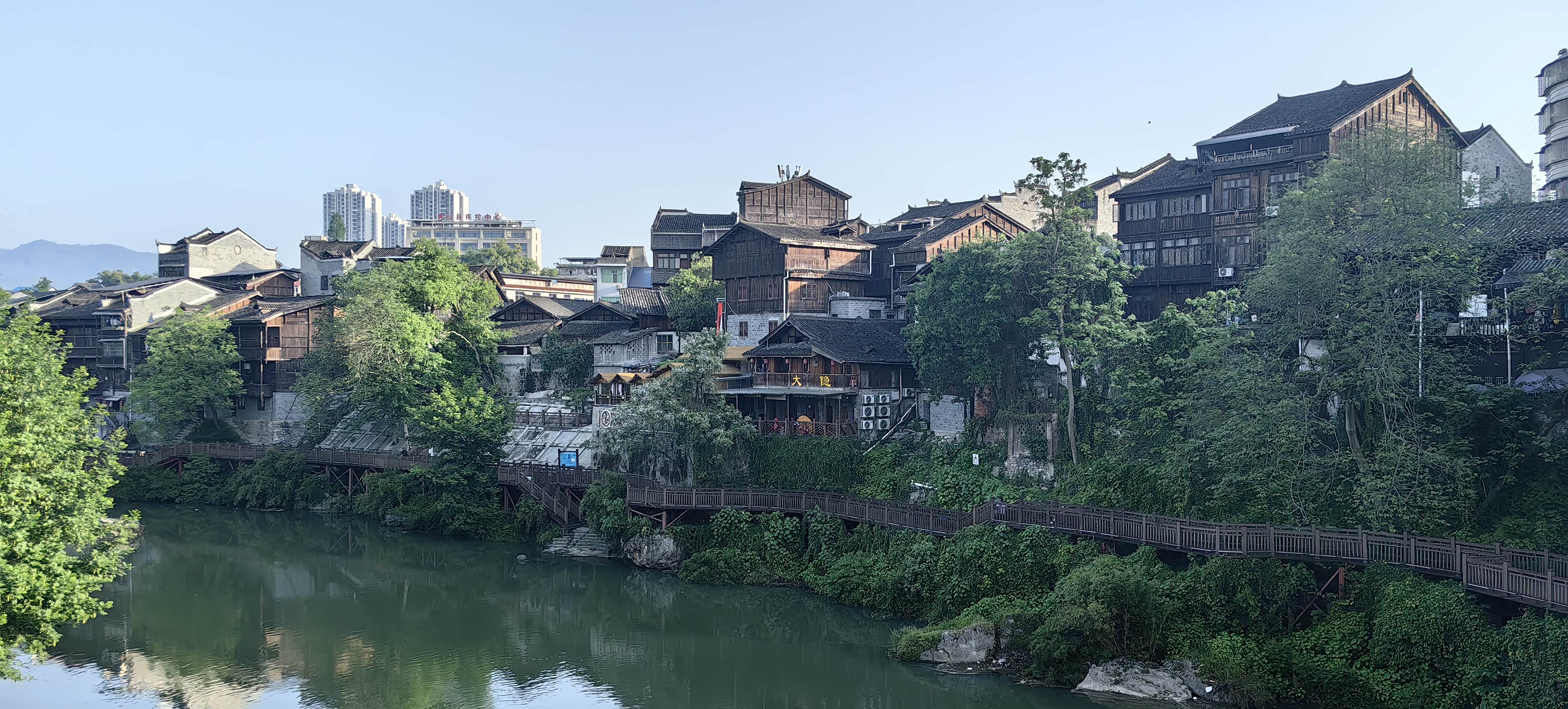 早上吃过早餐,前往秀山西街古街游览。西街沿梅江河两岸,北起北门廊桥,南到牛市井,以古街老巷、天后宫、八卦井、涵秀廊桥、牛市井等多个景点为核心。这里不像洪安古城那么有名气,所以,也少了许多商业气息,几乎见不到什么游客,我们漫步在梅江岸边,江两岸的吊脚楼与横跨梅江的风雨廊桥,无不在宁静中透着古朴,这里适合静静的在岸边发呆。