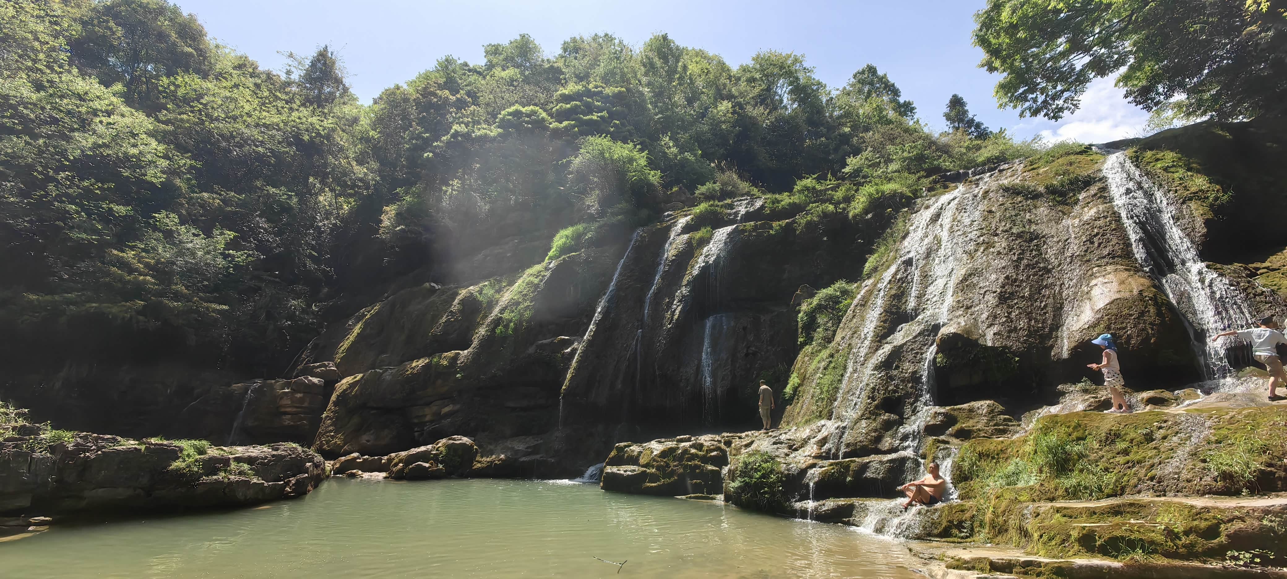 今天的目的地六盘水市,途径最著名的景区应该是毕节百里杜鹃,这里我们曾经来过,还有现在杜鹃花都已经败了,选择了一个免费景点米底河景区,下高速几十公里,这里也就是一个以瀑布为主的小景点,现在枯水期,所以,瀑布变成了小溪流,也失去了它的壮观景象,作为当地人休闲之地还是不错。