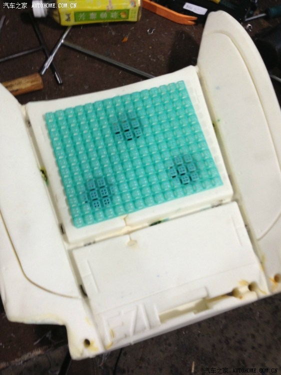 另外还有种改法,是把坑挖深点,先放硬支架,然后上面放软塑料垫,最上面用2层打孔海绵或者自行制作打孔的高回弹海绵,这样通风效果会稍差点(毕竟风需要通过的距离远了),但坐的效果最接近原厂。