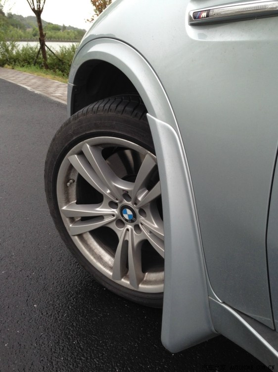 在一次过一段新路甩了一车+后玻璃+尾门玻璃的柏油后,依然决定装的挡泥板,外面的副厂只有普通X5的,我这车装不了,只好装了原厂的。去车检竟然说车身加宽了,不合格,最宽的地方明明是后轮轮眉