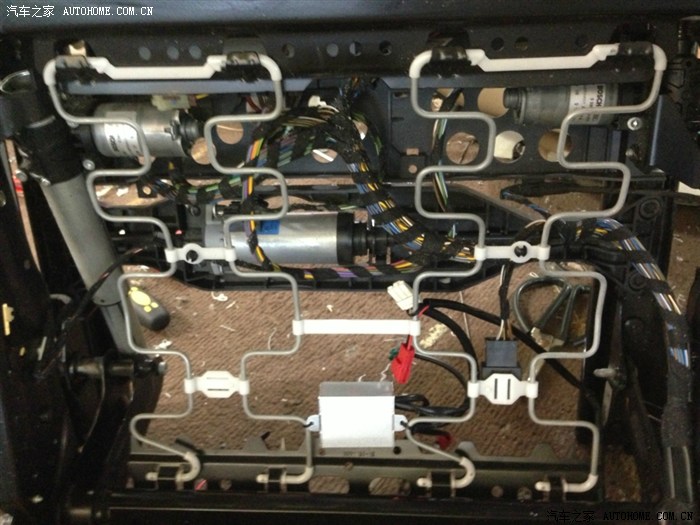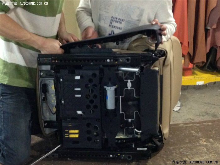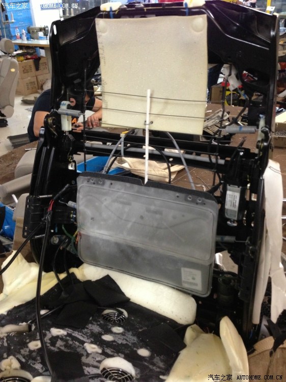 座椅结构简洁好拆,坐垫下面是蛇形弹簧,宝马的座椅舒适性其实挺不错的,ML下面没有什么弹簧(其他只改过ML座椅,其他的没改过,不了解结构),是奔驰的设计理念吧,S级的后排海绵坐垫下面也是钢板