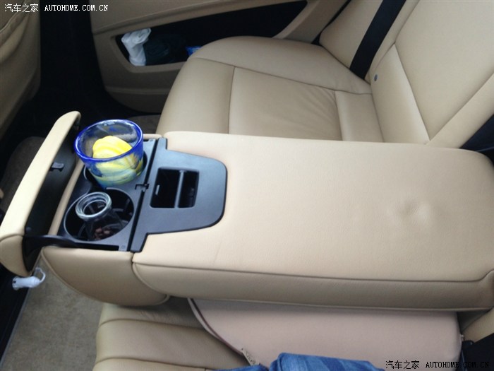 后座中央扶手,柔软厚实,够大,杯架能盖起来,不影响靠手。把ML、途锐、卡宴之流的寒酸扶手甩出几条街。