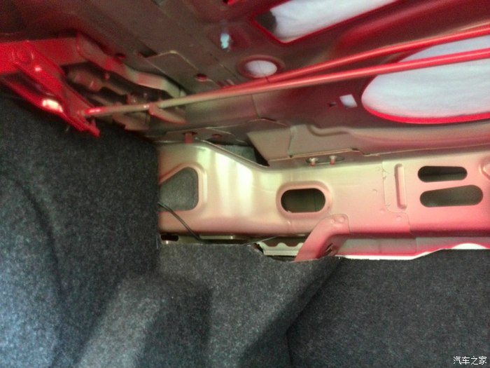 后备箱可以看进去的横梁,全铝合金。