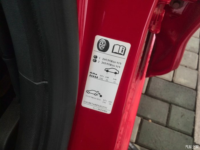 驾驶座旁边的轮胎更换信息。