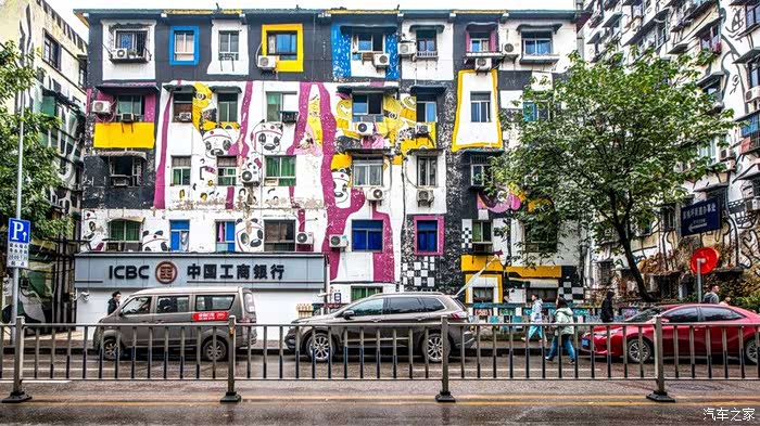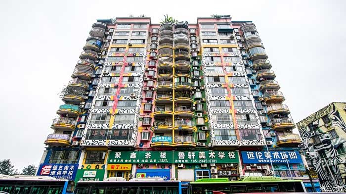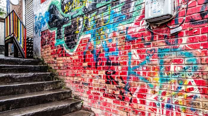 在交通茶馆外,艺术气息浓郁,街边围墙、转角,大楼外立面等地方尽是彩色的涂鸦。