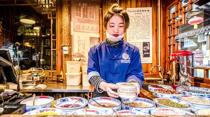 在磁器口古镇新旧建筑相间的街道上,酒馆、茶馆、食肆、银器店、小吃店等和谐相处。它们可以是临街吆喝的明铺,也可以是小巷道里、吊脚楼上等待发掘的惊喜。
