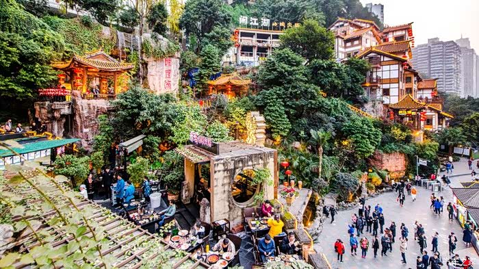 走进洪崖洞这座“立体式空中步行街”里,不同于以往走进古镇那时空穿梭般的感觉,内外热闹各有不同。外是车水马龙的喧闹,内有人声鼎沸的热情,在这里可以品尝到的传统小吃和时新美味也各有千秋。