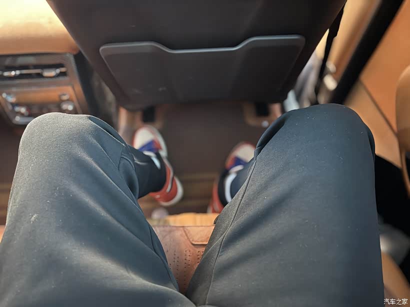 空间方面:超过五米的SUV车内空间自然够用。以我1.8米的身高以正常的坐姿坐在第二排双腿距离前排还有30厘米的距离,头部距离车顶也有20厘米的距离,即便是后排坐满三个人也不会有过多的拥挤感,坐着颇为松弛。