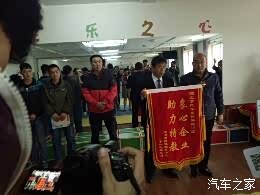 参观完之后的捐赠仪式,4S店和车友会捐赠给特教中心的钱和物资