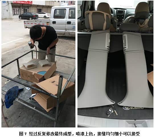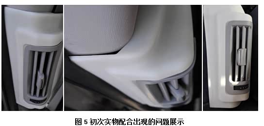 心里想这么简单就搞定了,我还沾沾自喜一番。于是,我在淘宝上找了一家口碑还不错的3D打印店铺进行了打印加工,并且很快邮寄到我手里。我还记得那天我满心欢喜的拿着件准备试装一下,结果悲剧了。配合度很差,也就是勉强能配合上,3个零件之间的接缝很大,很不均匀,买的那个奥迪A6L的出风口也是勉强能塞进去(如图5)。开斯巴鲁的都是有品位的人,这个样子直接无法接受。我当时犹如被浇了一盆凉水,怎么会这样?我还找淘宝卖家询问是不是打印的质量有问题。结果的确不是人家的原因,因为3D打印机也有0.1mm的表面误差。最初0.1mm的误差我真没当回事,觉得0.1mm很小的数值,肉眼是看不出来的。的确如果只是在平面上,长短方面0.1mm的确肉眼看不出来,但是在三维空间里面,在复杂曲面组成的图形里,曲线的长度、方向、曲率等等都有0.1mm的误差的话,当这些误差结合在一起的时候,无限放大的误差就很恐怖了。当扫描仪和3D打印机在无法缩小抵消误差的时候,或者误差持续叠加到设备得到的数据之间无法对接的时候,它会强制收敛数据,用自己认定的方式来走线,甚至是直接画直线,以求能得到扫描或者3D打印的文件。没有原始数据的机械图纸就是有这个麻烦。人家淘宝卖家说的也对,如果扫描都很精准的话,中国的汽车工业也不会落后这么多了,买台奔驰拆碎了零件扫描之后再组装不就行了吗。哎!是我自己太天真了。