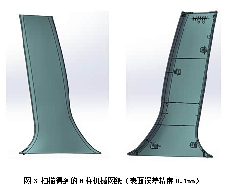 整体轮廓出来了,大概数据也确定出来了,不过这些数据都是相对于B柱为基点测量的数据,具体B柱的数据是什么,我也不清楚,这种汽车内饰的原始机械图纸文件肯定属于车厂最高的商业机密了,我是不可能拿到的。于是,我在58同城找了家搞3D扫描的,帮忙扫描了一下(为了把重点问题描述清楚还是当面交流靠谱点,重点扫描的东西也好交代清楚,于是找的58同城,没找淘宝)。扫描的精度说是有0.1mm,听起来还不错。拿到的文件看着也行(如图3)