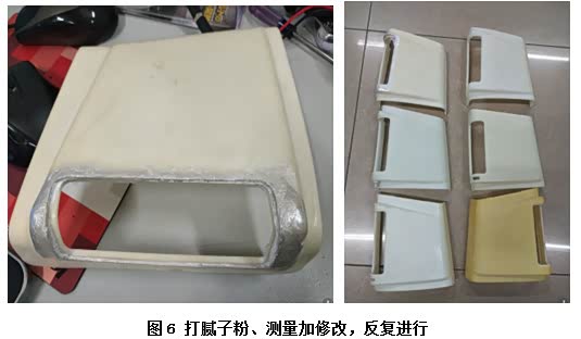 当时看着这个烂零件,我顿时就灰心了。这该怎么改?看着这些问题我都不知道该怎么改,复杂曲面怎么测量,直线好办有游标卡尺,曲线没法测量啊,只能凭自己的经验和感觉去画了,测量之后的精度如何也不知道,即使修订好了曲面,3D打印机那边的误差怎么减小,全是问题。弄得我一度又想放弃了。但是看看小森老是不甘心。期间,被这几个问题折磨的睡不着觉,都有点强迫症了。有一天,我在躺在床上突然想起了初中几何学的平面曲线5点作图法。X轴,Y轴数据作为一个点的坐标可以确定平面上的一个点。同样三维空间应该是X轴Y轴Z轴3个数据就可以确定一个点。这样,只要自己假设一个基本坐标系,根据这个坐标系来测量一个个所需的各点在这个假设的坐标系里的XYZ轴的数据就能描绘出这条曲线,多条曲线就可以组合成一个面了。画曲线找5个点是最基本的,再按照曲率的变化可以平滑的画出一条曲线。但是这个配件大部分的曲线并不是平滑的,在特定的部位只能加大测量密度。虽然麻烦,好歹这也算是个解决问题的办法。哎,有的时候为了画一条精准的曲线,最多的时候需要20多个点,一条曲线就要测量60个数据,4条曲线来确定一个曲面,至少要测240个数据。就这样,这么多曲面我就一点一点的测量,每天处理大量的数据,一点一点的修改。最初的文件先测量,再打腻子粉,然后再测量得出对比数据,之后再扫描进行测量,对比修复。如此反复扫描、修改、打印,再修改。反反复复折腾了很久,最后竟然弄好了。虽然还是有误差但起码看起来精度不错(如图7)弄完之后顿时感觉自己的绘图水平也提高不少,万里长征走出来了。
