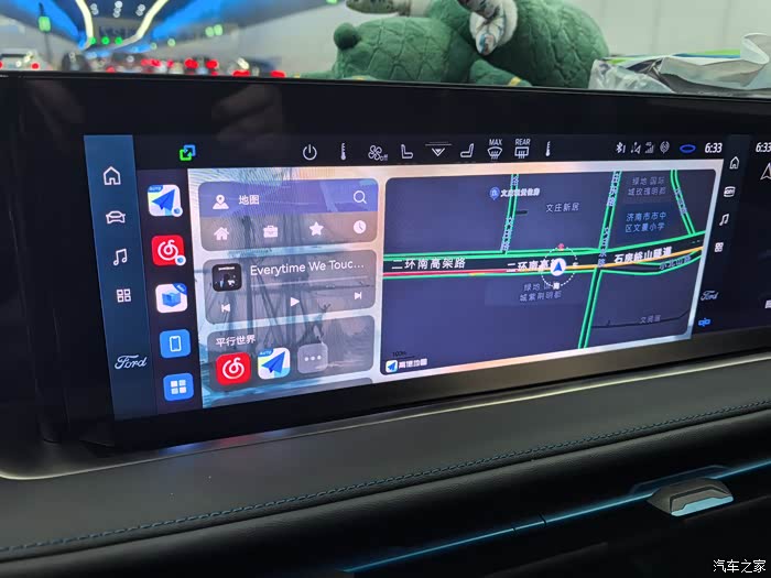 8.车机娱乐。车内一米多长大连屏,霸气是霸气,就是有点弱智。不上8155芯片也就罢了,仪表盘还做的像个安卓机,显示框死板不灵活,且不支持 hicar 、carplay,自己搞了个驾驶伴侣,连上我的p70倒是能用高德和qq音乐等几个软件,但我的手机卡的像狗。因为太小众还不能破解中控,下不了app,我服。自带的爱奇艺从来没用过,送的1g流量跟开玩笑似的。车机唤醒“你好福特”动不动就瞎接话,直接关了。车机差评。