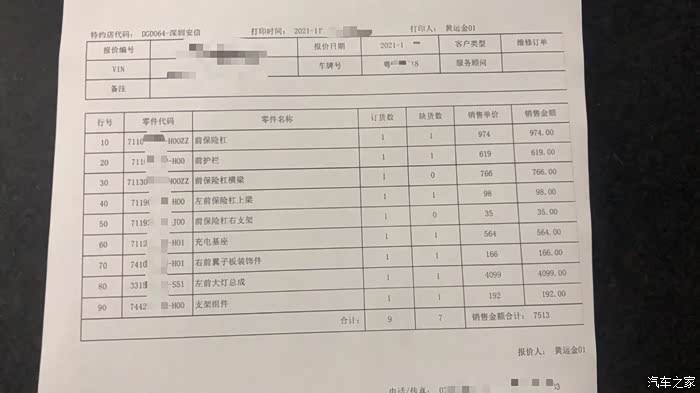 还以为只是更换保险杠,车前盖钣金就可以了,没想到需要更换这么多部件。