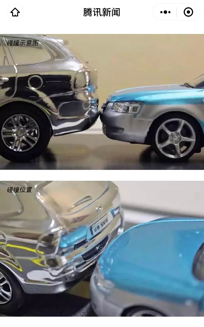 当时的速度并不快,15码以内,顶到前车的时候也没有感受到明显的碰撞感觉,只听到了一声碰撞的声音。