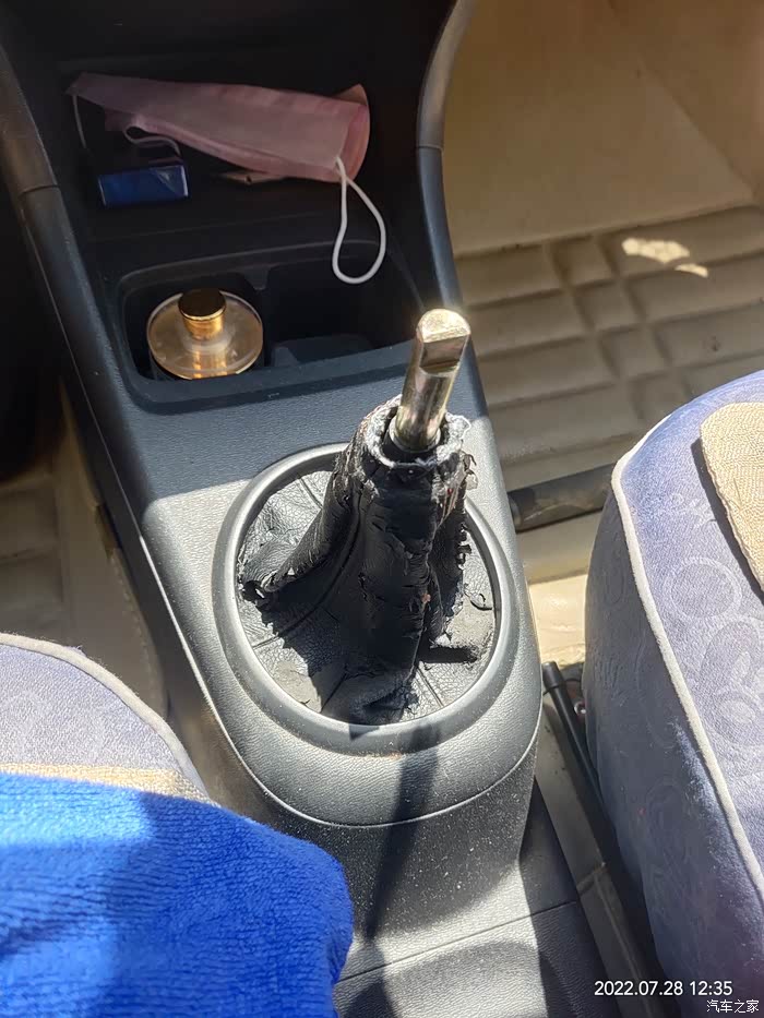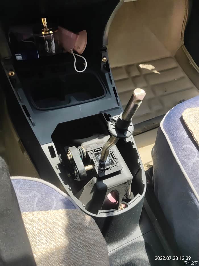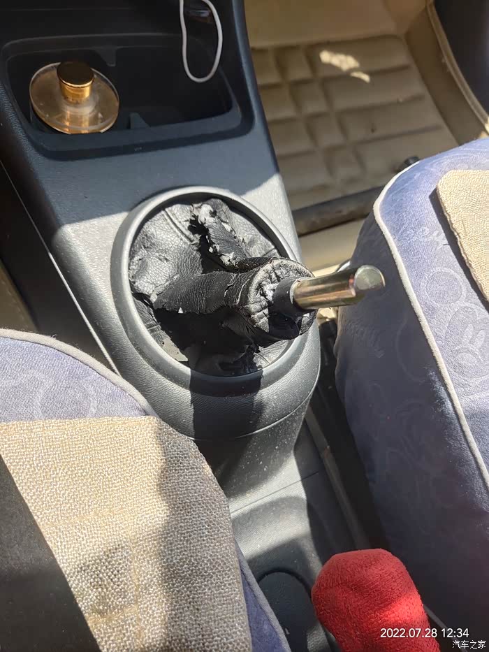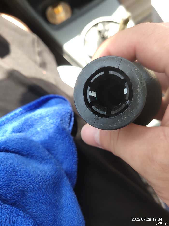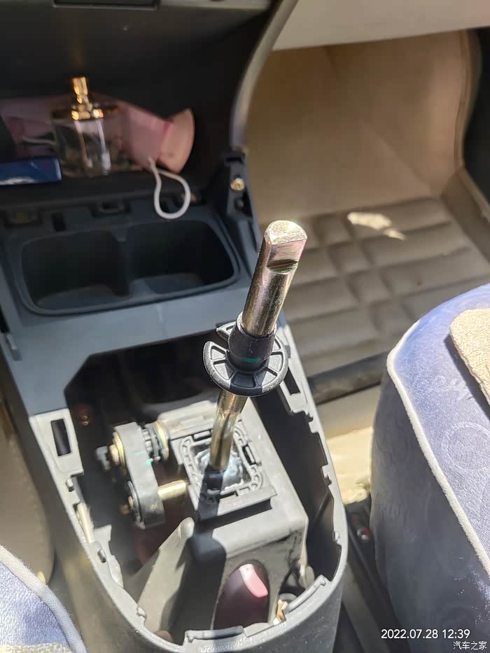 车子晒滴热热的,坐车里和蒸笼一样,但正好方便作业,这个档头疙瘩是卡扣的,凉了是硬的,拔不下来或者会伤损物件。