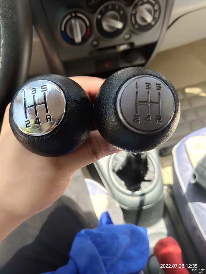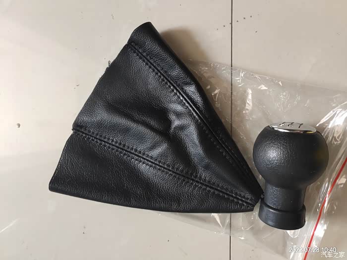 在多多上买了一个牛皮套的,比原车上的高级些,还买了个手球,以防万一,要是拔坏了好更换。对比下还是原车上的手球配重大点,后买的轻点。
