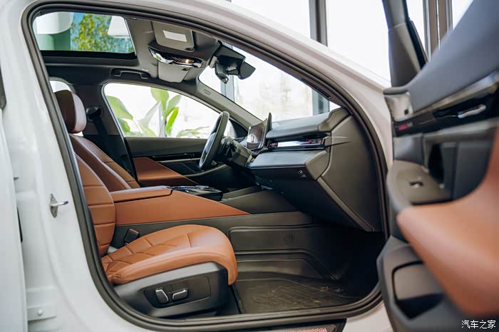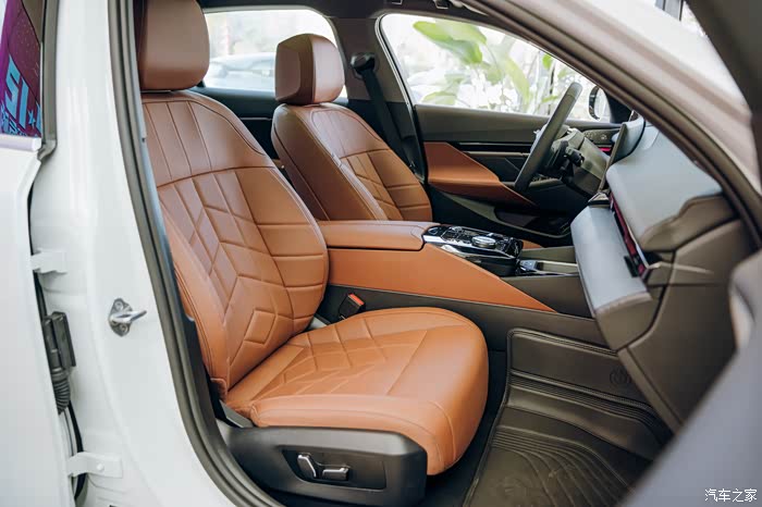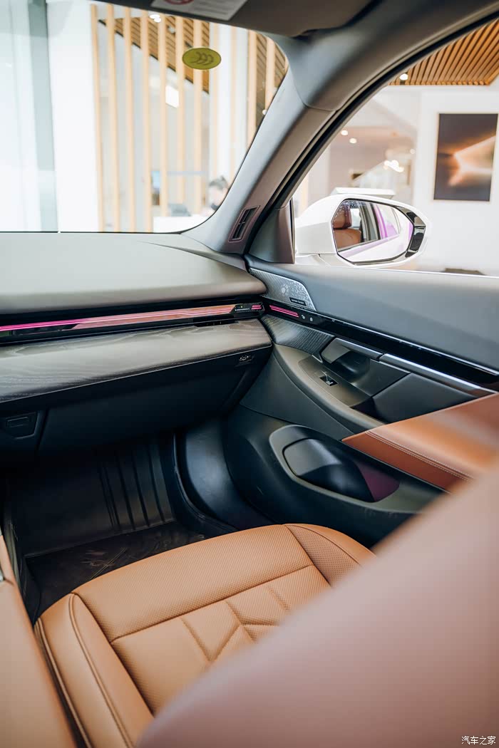 座椅用料材质看上去很高级,仔细看能看出细致的工艺,尤其是氛围灯,点亮后让整个车里都显得既舒服又奢华,很难不爱。