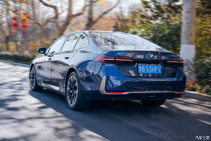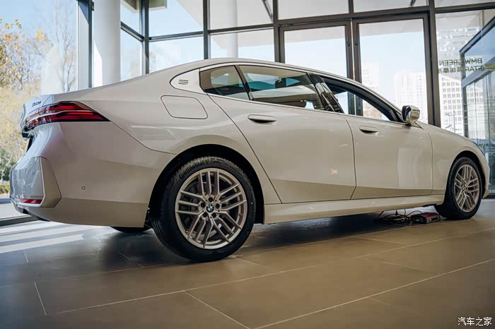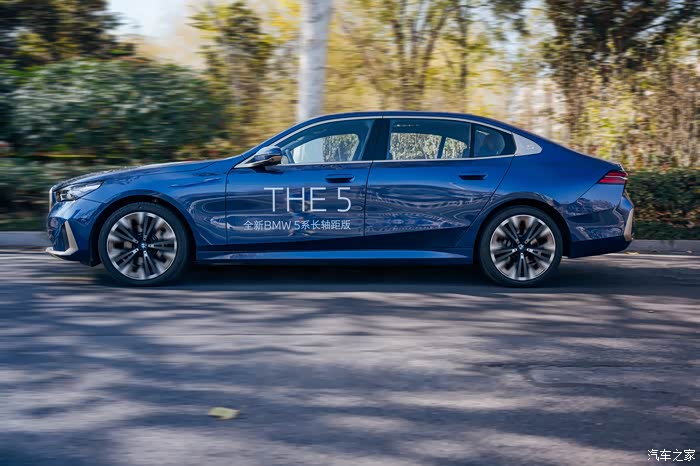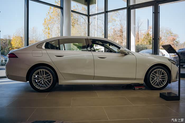 车身侧面最明显的就是经典的霍氏拐角设计,数字5的设计明显就能看到是一台5系的车型。