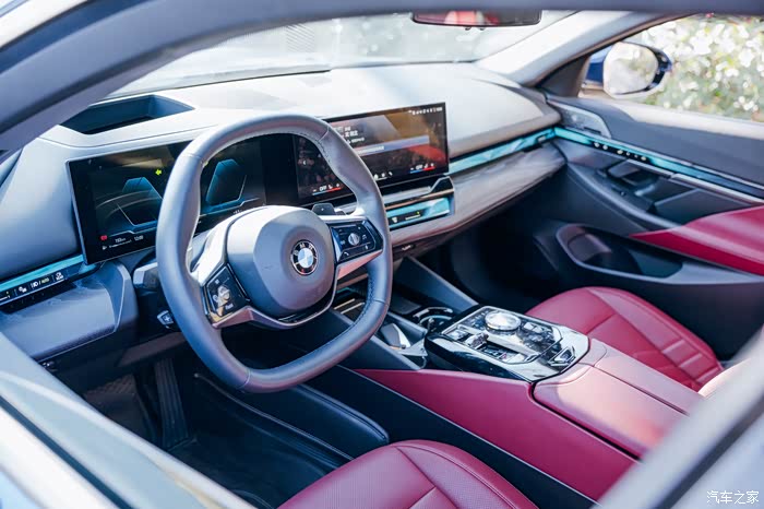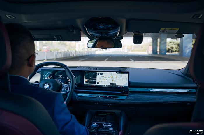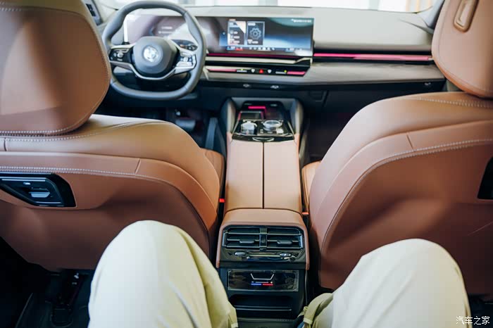试驾车型为2024款530Li 尊享型 豪华套装,双联屏的设计让车内很有科技感,我先坐到后排体验一下哈哈。