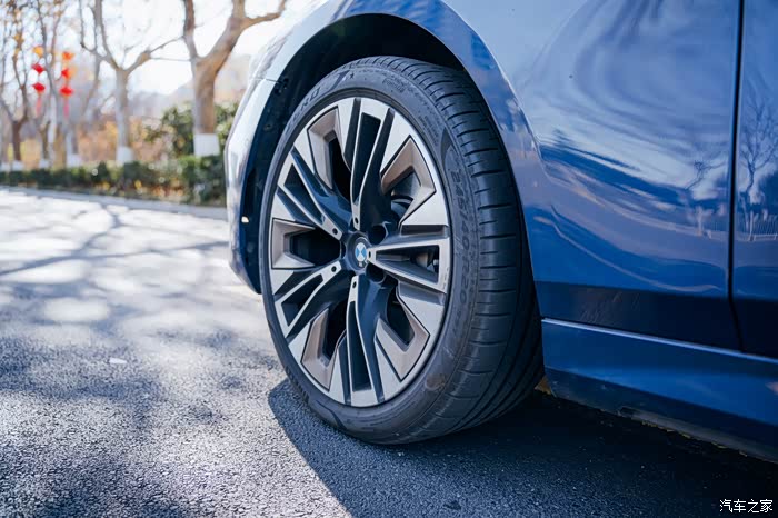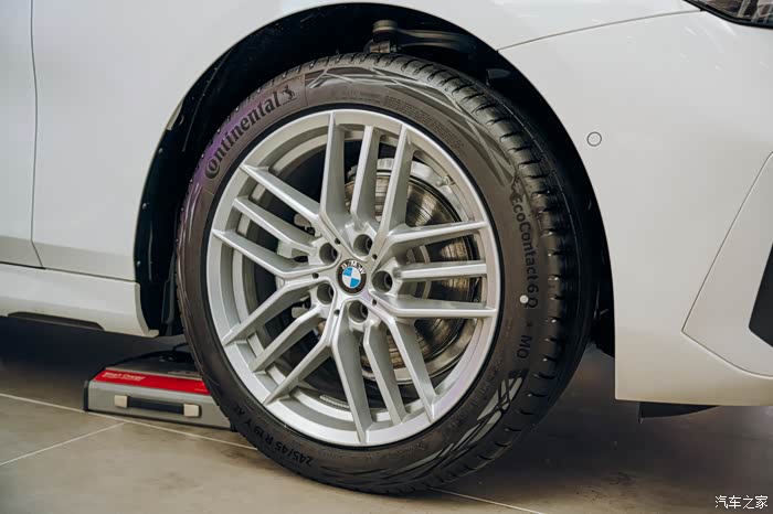 轮毂是家族化的双色多辐式造型,搭配普利司通的轮胎,尺寸还挺大的,是245/40 R20的。