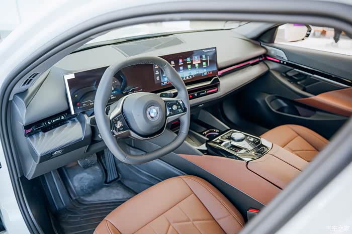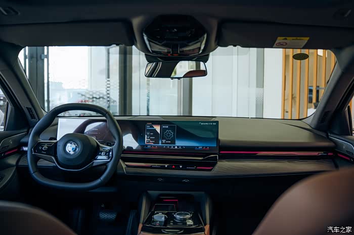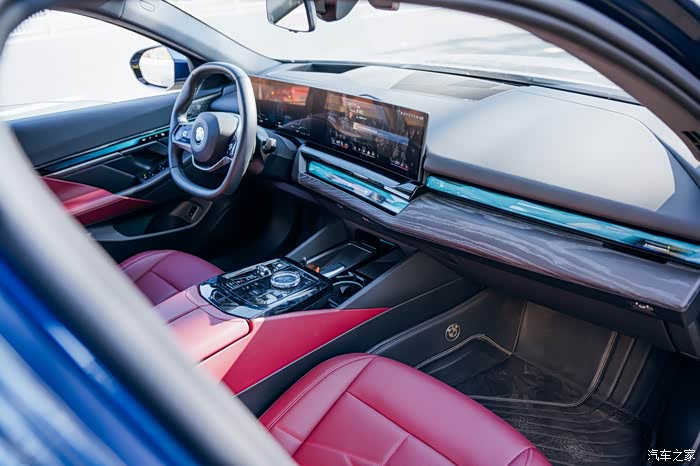 仪表台上的木饰板有鎏金雕刻工艺,这是5系才有的,让车里看起来更加精致有氛围。氛围灯从门板一直贯穿到了中控台上