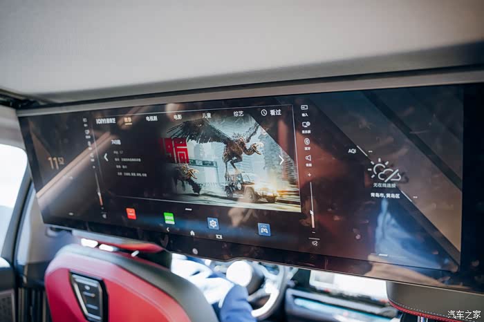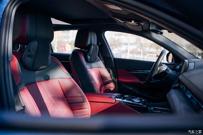 一体式悬浮曲面屏,环抱式交互质感的内饰,不得不说这红黑色的内饰颜色搭配很有运动感。有很强的驾驶欲望