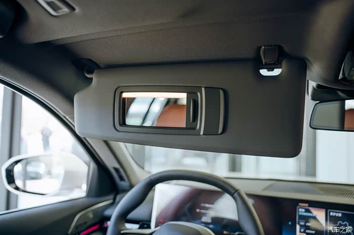 遮阳帘里带有化妆镜,拉开后灯光就自动点亮。