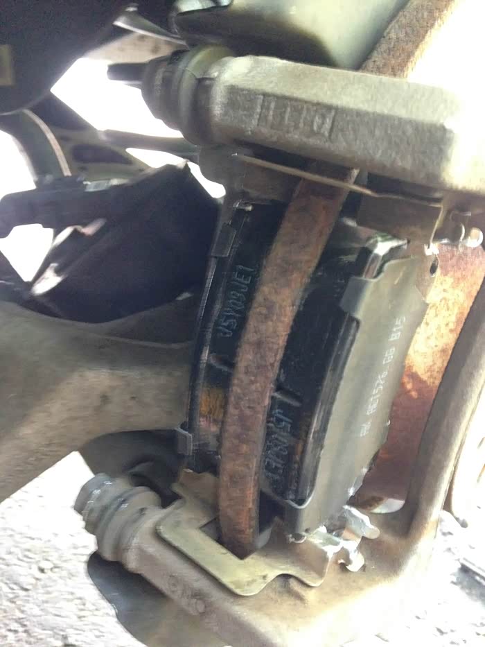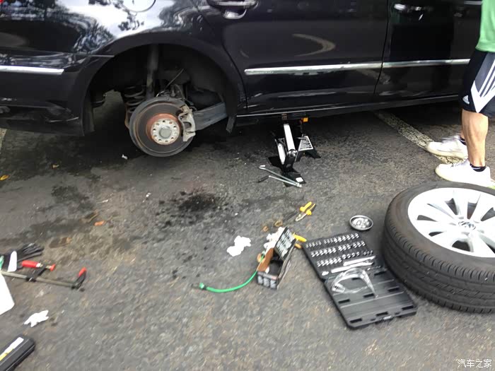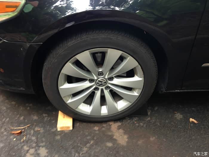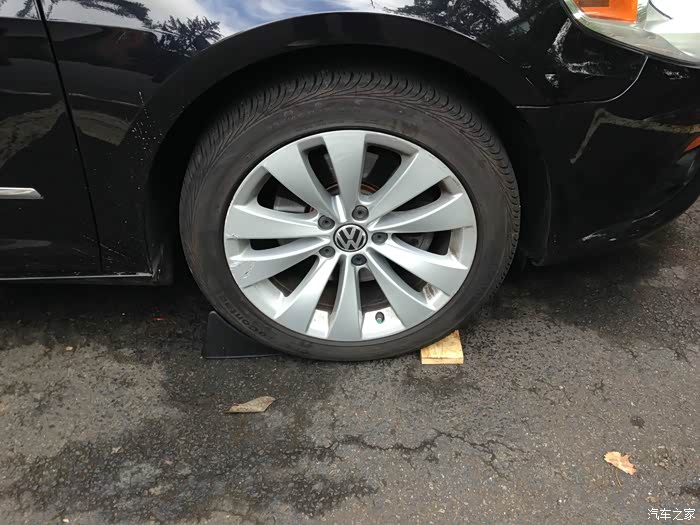 当然除了自己的车,我也在力所能及的范围内去帮助同学们。这是我一哥们儿的 CC,他这车上次去店里保养时候,dealer的人提醒要换后刹车了,连刹车盘带刹车片一起要价480美元!!!这简直是抢劫呀,因为这些东西自己买来也就一百多美元,连人工费要300了不起了,天下乌鸦一般黑!