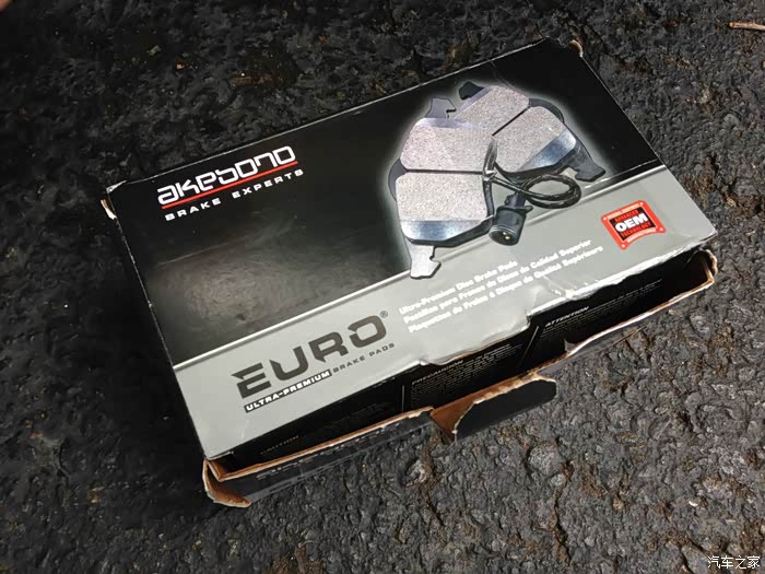 他的刹车盘其实还挺厚的,只是有了点痕,刹车并不抖,那么我们就先试试只换刹车片了。我们配件从美国亚马逊买的,一套四片的后刹车片。基于我之前使用经历,我们这次选择的品牌依然是日本Akebono刹车片。Akebono品牌建立于1929年的日本,1980年进入美国,也算是这行业的老品牌了。虽然网上我也能够找到比这两个品牌便宜一半多的配件。不过既然自己动手,又是我们自己的车,那还是买好配件吧,毕竟手工费省了不少钱了。记得刹车片是四十多美元从下单到运到家只用了两天。既然东西齐了那就开始整吧。 具体准备工作和所用工具,可以参见我前面的更换刹车帖子,这里就不赘述了。